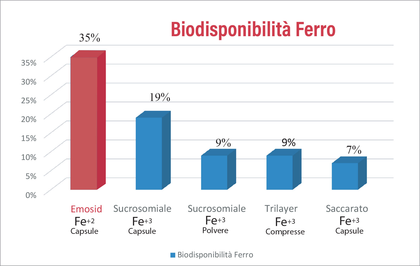 La biodisponibilità del Fe++ presente in Emosid® è particolarmente elevata ed è attribuibile all'utilizzo di un'innovativa forma di Phytosoma attivo a doppio strato, ottenuto attraverso la particolare e brevettata tecnologia Phytobilayer®.